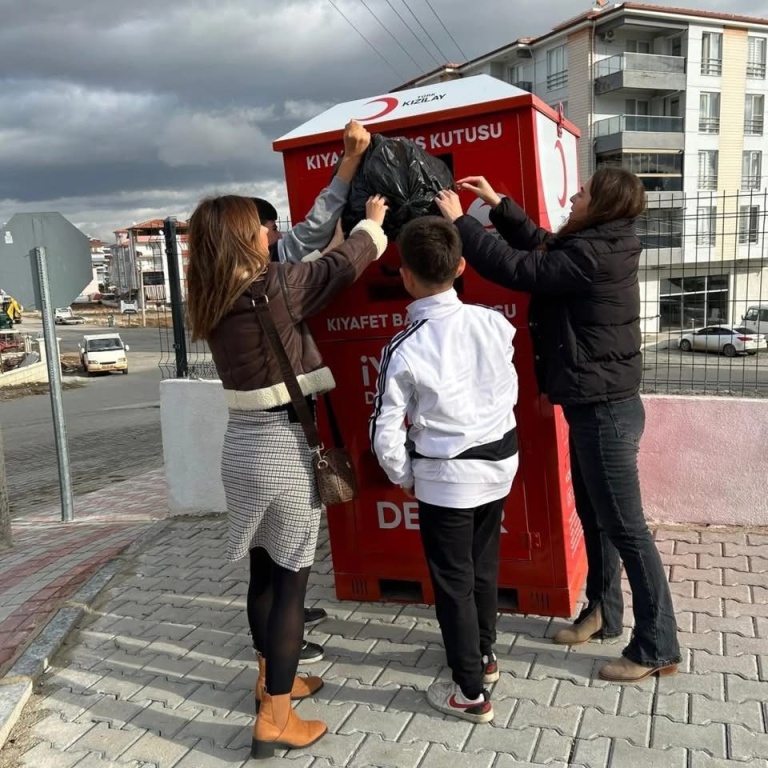 Çevre Koruma Kulübü ile Kızılay ve Yeşilay Kulübünün 'sıfır atık ve yardımlaşma' konulu değerleri pekiştirmek için, birlikte yürüttüğü toplum hizmeti çalışmasının ilk kısmı tamamlandı. Kulüp öğrencileri küçülen, eskiyen kıyafetlerini Kızılay kıyafet bağış kutusuna bıraktı.